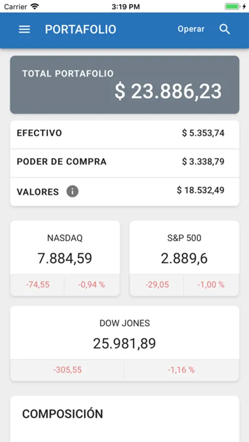 - Operate with shares listed on NASDAQ, NYSE and AMEX (*) in real time.