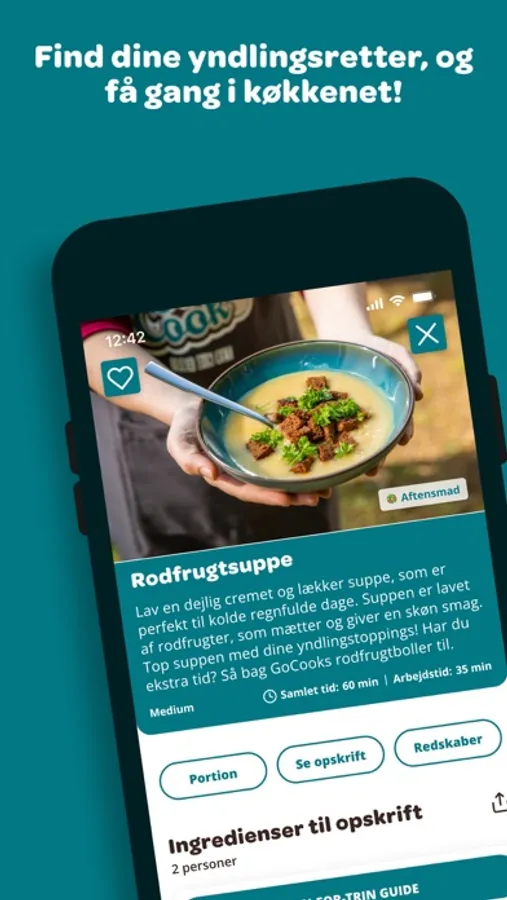 Med GoCook får du over 250 overskuelige trin-for-trin-opskrifter med fotoillustrationer, mulighed for at tilpasse opskrifterne til 2, 4 eller 6 personer og køkkenure, der holder styr på tiden for dig.