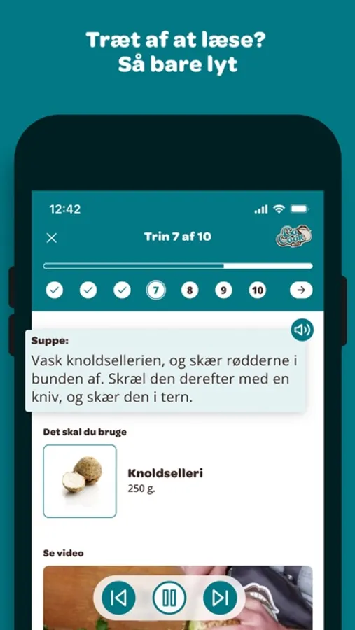Danmarks fedeste en kokkeskole-app med flotte videoer, billeder og forklaringer på alt, hvad du skal bruge af råvarer og redskaber for at komme i gang i køkkenet.