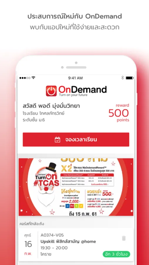 OnDemand เป็น Application ที่ครบที่สุด รวบรวมทุกการใช้งานมาครบถ้วนสำหรับน้องๆทุกคน ด้วยรหัสเดียวสามารถใช้งานได้ทั้ง OnDemand และ ALevel