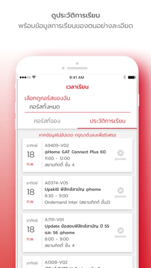 -Booking ได้ง่ายดาย ทั้งจองเวลาเรียน เปลี่ยนคอร์สเรียน ยกเลิกการจองและเช็คประวัติการใช้งาน