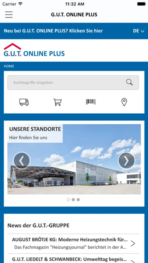 Mit der G.U.T.-APP im Bereich der Gebäude- und Umwelttechnik immer auf dem neuesten Stand. Bequem bestellen, einfach informieren: An jedem Ort und zu jeder Zeit können Fachhandwerker unseren Webshop G.U.T. ONLINE PLUS geräteübergreifend nutzen. Unser Offline-Service ermöglicht es, auch ohne WLAN-Zugang Warenkörbe anzulegen. Fachhandwerker benötigen auf die Schnelle ein Produkt auf der Baustelle? Die APP findet für sie unser nur wenige Minuten entferntes Abholexpresslager. In unserem neu gestalteten Newsbereich informieren wir über alle Neuigkeiten aus der G.U.T.-GRUPPE und aus den Sortimenten Sanitär, Heizung, Lüftung/Klima, Installation, Brandschutz, Dachtechnik, Werkzeug und Tiefbau sowie Veranstaltungen in der Region. Herunterladen und profitieren: Die G.U.T.-APP macht das Fachhandwerk mobil.