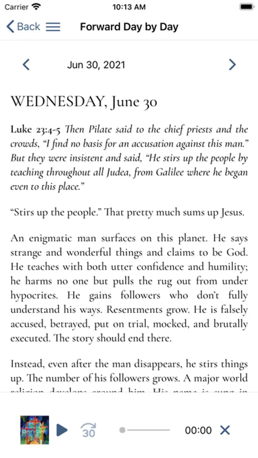 Forward Day by Day offers prayer on the go—daily spiritual practices for busy people. In English and Spanish. The app includes the daily meditation from Forward Day by Day, as well as all daily prayers from The Book of Common Prayer of the Episcopal Church, and the daily scripture readings from the lectionary. Integrated podcasts allow users to listen within the app as they read. Display preferences provide various fonts and text sizing options. Forward Day by Day is an offering of Forward Movement, a ministry of the Episcopal Church.