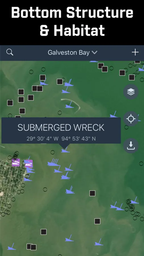 • Fish habitat: reefs, rock piles, cribs, etc.