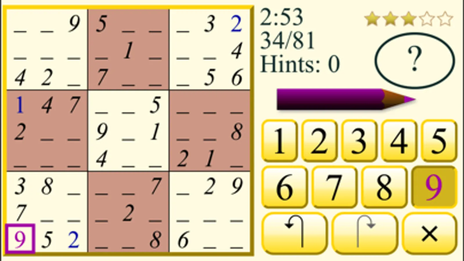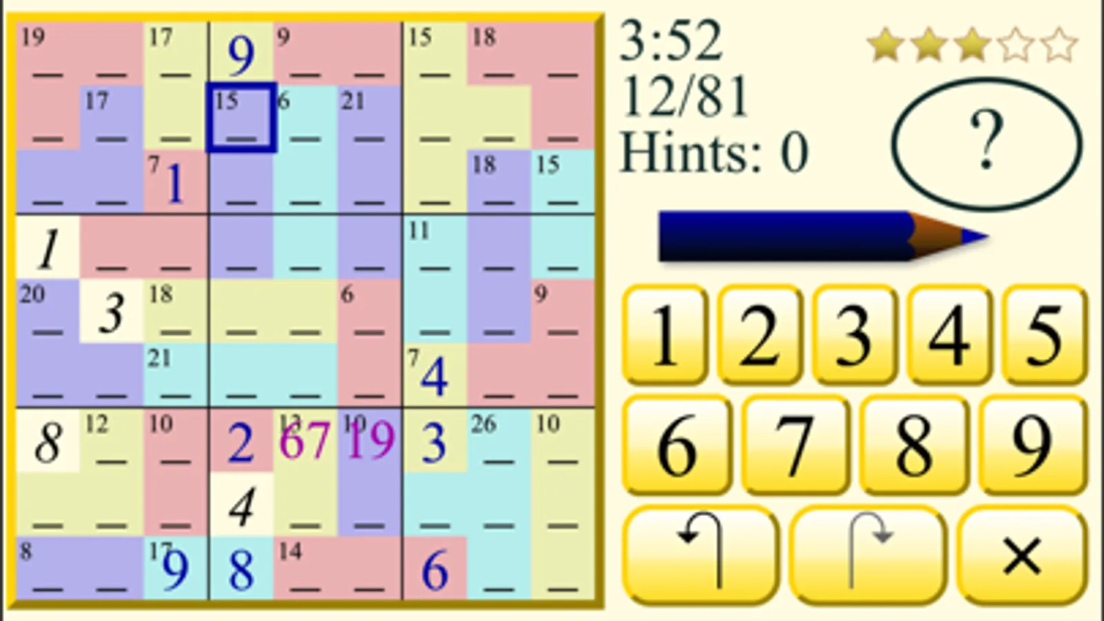 Not Just Sudoku provides a variety of puzzles including Sudoku, Calkuro, Futoshiki, Sea Search and Killer Sudoku. Our focus is on producing high quality puzzles in a wide variety of types and difficulty levels. The application features a large playing area, the ability to place multiple values in each cell, and the ability to undo and redo moves.