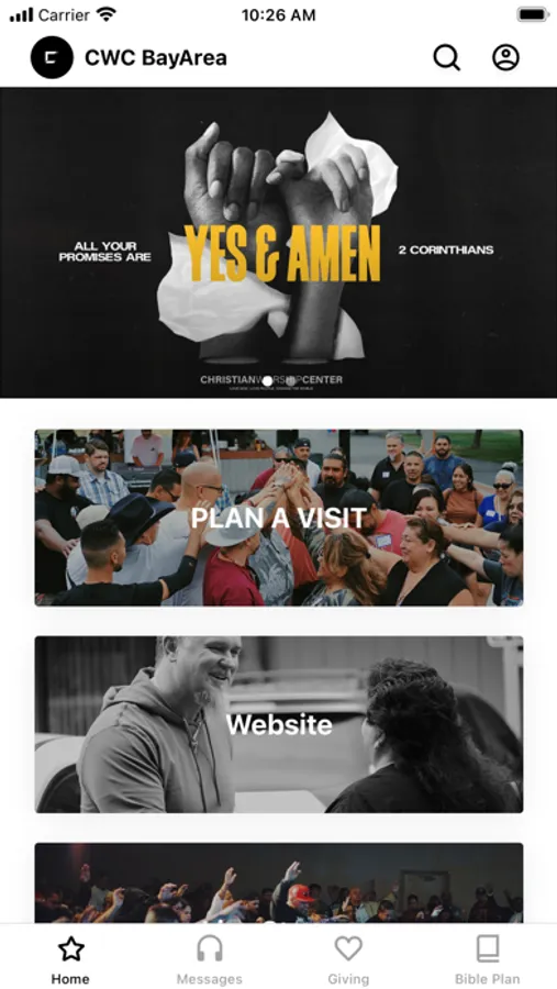 The CWC BayArea app was developed with the Subsplash App Platform.