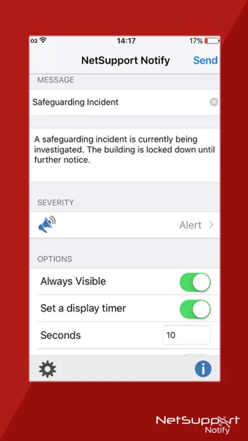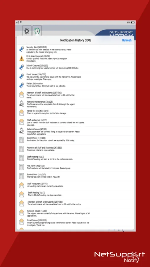 The Mobile Console, a free of charge extension to the traditional NetSupport Notify desktop version, enables you to deliver instant and attention grabbing alerts and notifications direct to Windows, Mac and Linux desktops or unattended information displays across your organization from your tablet or smartphone.
