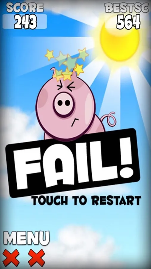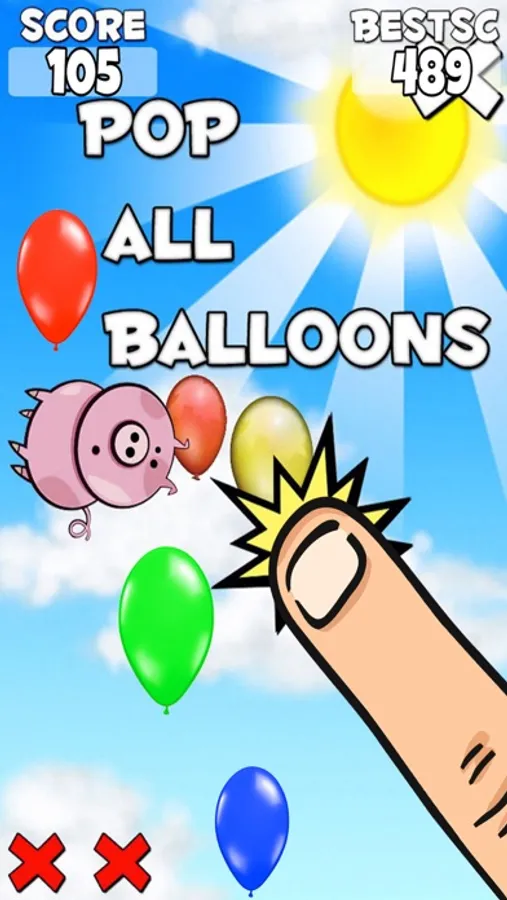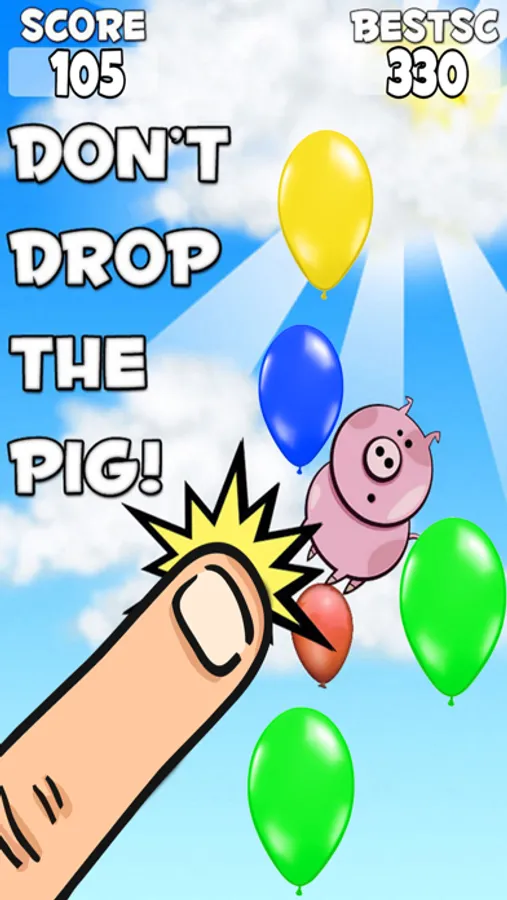 Hit with your finger the blowing up balloons on the screen and touch the pig to prevent it from falling down.
