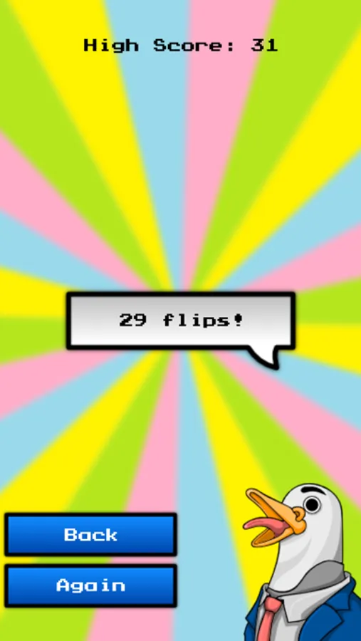 A simple game where you tap the screen to dive and do as many flips as you can. Try to get the high score and challenge your friends.