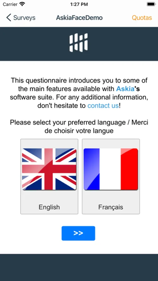- Full integration: askiaface for iOS links seamlessly into other Askia products giving you advanced survey design features (askiadesign) and effective fieldwork management (askiafield).