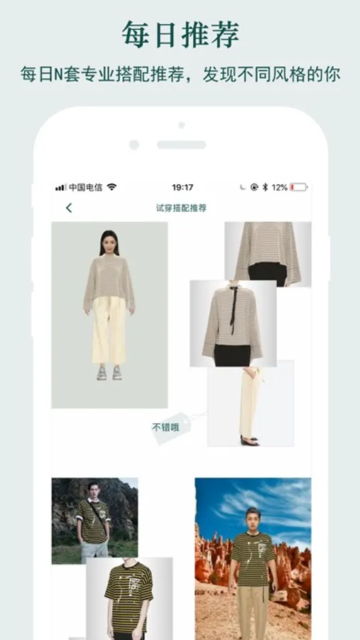 当您试穿一件上衣时,您一定会想跟什么样的裤子搭配,虚拟试衣间能解决衣、裤、鞋等各类服装搭配的问题,就好像有一位服装设计师、服装搭配师在帮您选衣服和买衣服,让您永远美美搭!