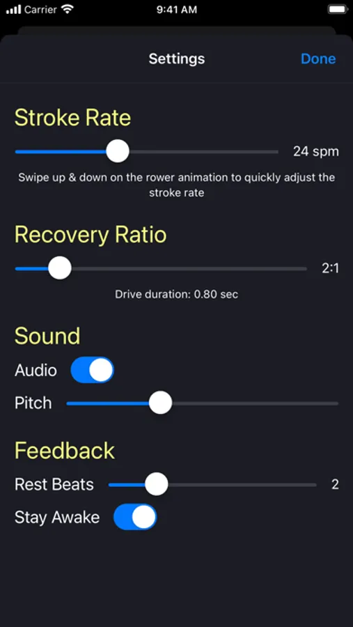 A rower‘s metronome. Use sound and graphics to coach rowing cadence.