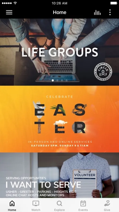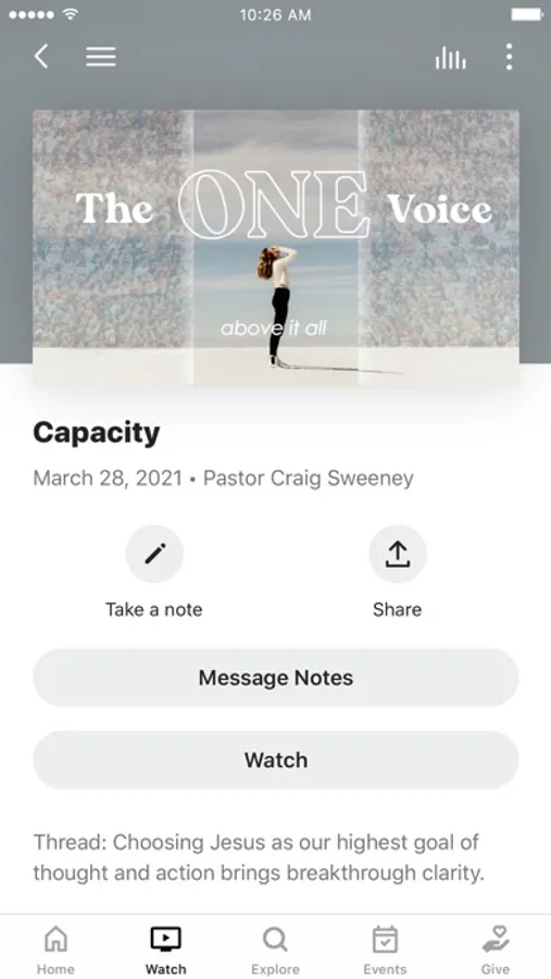 When you download this FREE app, you're one touch away from our weekend messages, delivered straight from the stage. There are also tabs for music, events, announcements, and much more so you can stay connected and know what's going on.
