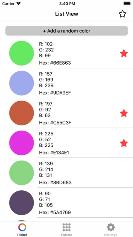 Randomise colors in the list