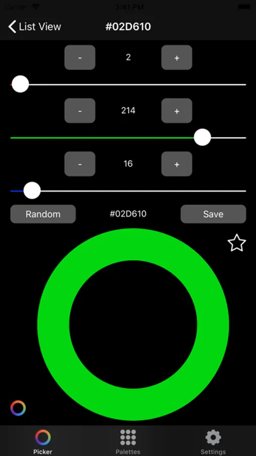 Use slider to pan between colors