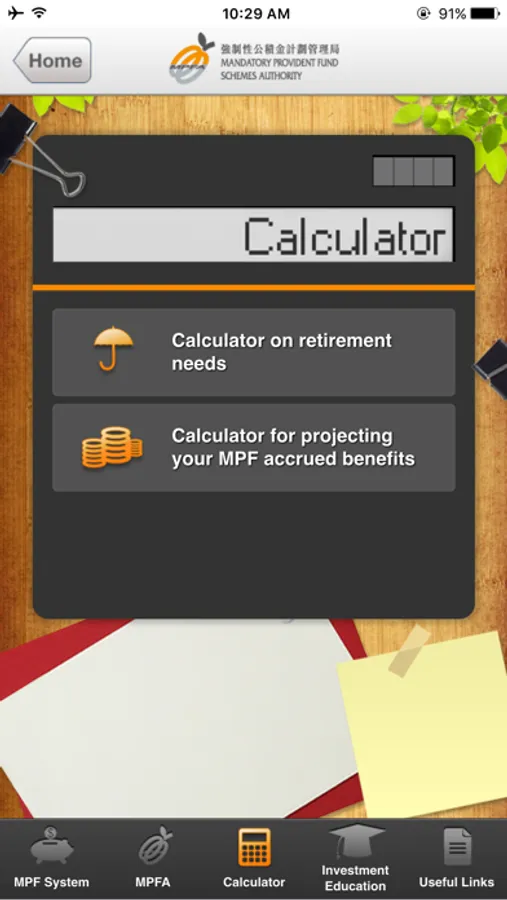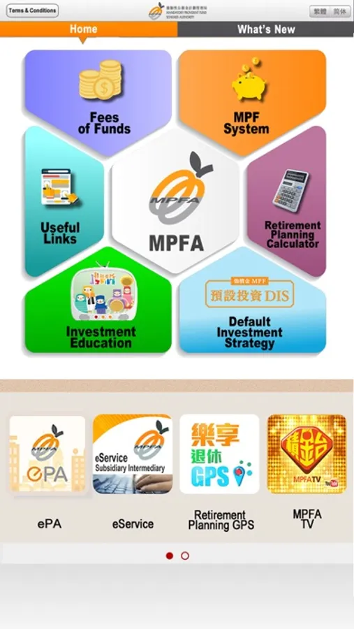 This application is produced by the Mandatory Provident Fund Schemes Authority ("MPFA"). It provides background information about the Mandatory Provident Fund ("MPF") System, the mission and role of MPFA and the services it provides to members of the public, MPF educational information, and some useful links to relevant organizations. It contains two MPF Calculators to help users estimating retirement needs and projecting MPF accrued benefits. An apps portal is also added at the home page to link to all MPFA mobile applications. Users can click on the icons to download and use the selected MPFA application directly from there.