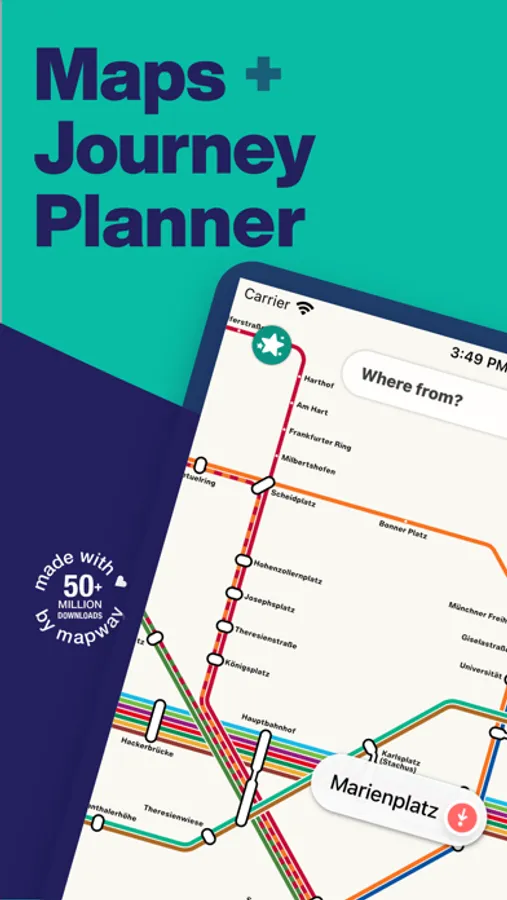 Munich Metro Plus available as an in-app subscription: 2,49 € monthly or 5,49 € annually, or as a one-off purchase of 12,99 €. Prices may vary by location. Cancel at any time, for any reason. Payment will be charged to your iTunes Account at confirmation of purchase. Subscription automatically renews unless auto-renew is turned off at least 24-hours before the end of the current period. Your account will be charged for renewal within 24-hours prior to the end of the current period, at the cost of your chosen price tier. Subscriptions can be managed and auto-renewal may be turned off by going to Account Settings in your iTunes Account. Any unused portion of a free trial period, if offered, will be forfeited when a subscription to that publication is purchased, where applicable. Read our terms in full at mapway.com/terms