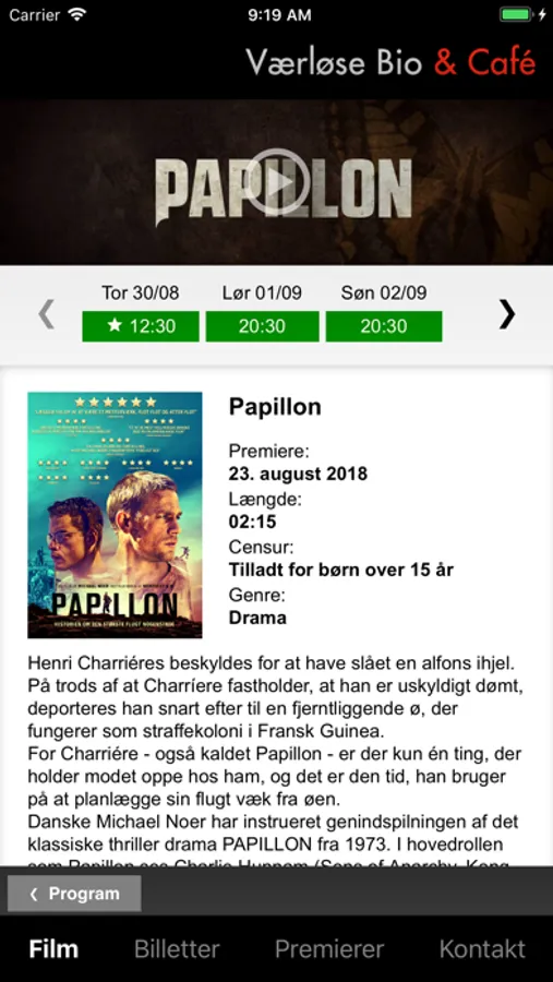 Med denne app har du mulighed for at gennemse programmet for Værløse Bio, samt se yderligere filminformationer som trailer, censur, medvirkende skuespillere, varighed m.m.
