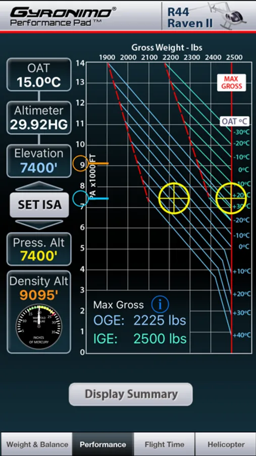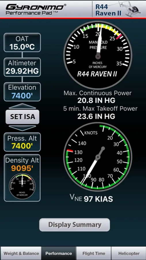 With the Gyronimo Performance Pad you can calculate weight & balance, performance and navigation data in just a few seconds! It is designed specifically for the Robinson R44 Raven and Raven II, and contains all necessary flight and performance data.