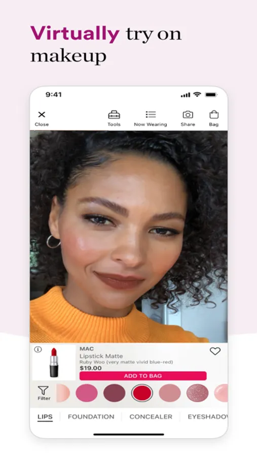 •Virtually try on thousands of looks in GLAMlab®! From our new hair color and lash try-ons to our Foundation Shade Matcher, swatch and color match products from top brands like Urban Decay, Anastasia Beverly Hills, Too Faced, NYX, MAC & more.