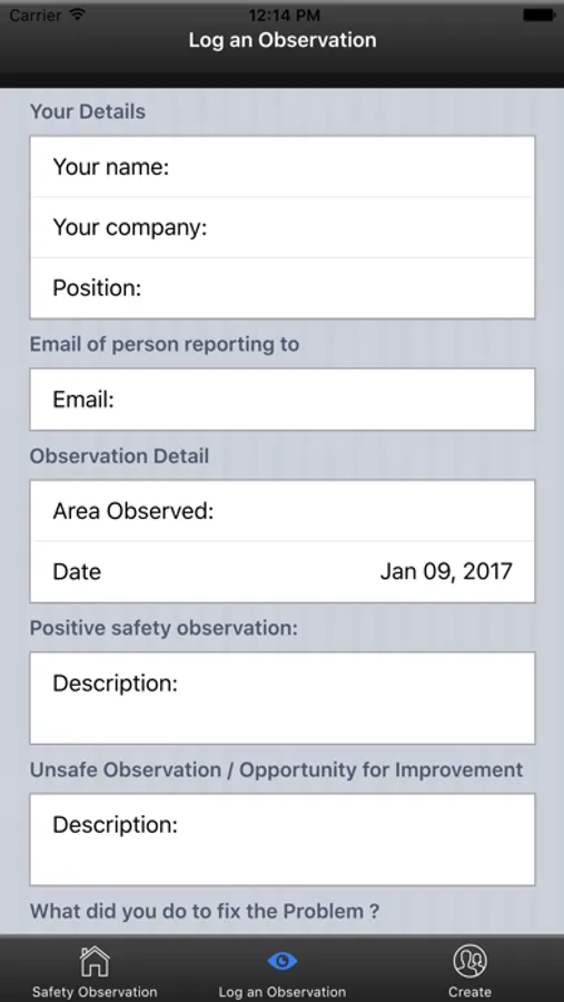 The Safety Observation app allows you to record safety issues that you observe, witness or are involved with and notify a preferred contact.