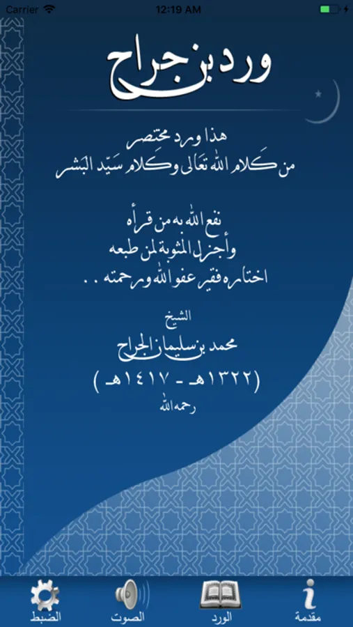 ونقدم في هذا التطبيق ورد مختصر من كلام الله تعالى و سيد البشر محمد صلى الله عليه و سلم و قد جمعه الشيخ محمد بن سليمان بن جراح رحمه الله تعالى للعلاج بإذن الله تعالى من الأمراض العضوية و الروحانية و الحسد و العين والسحر