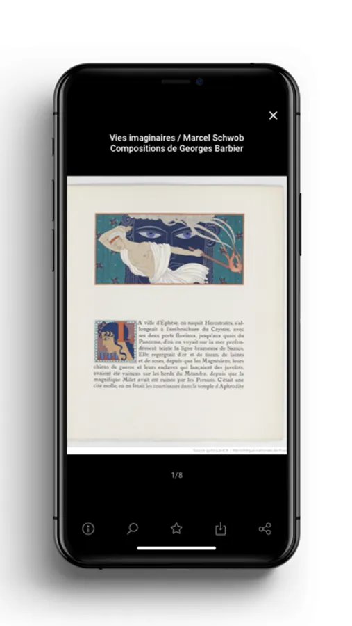 Discover the digitized collections of the BnF through various functionalities: search the catalogue, read documents in full, save your favorites, share them on social media and download them as ePubs or PDFs.