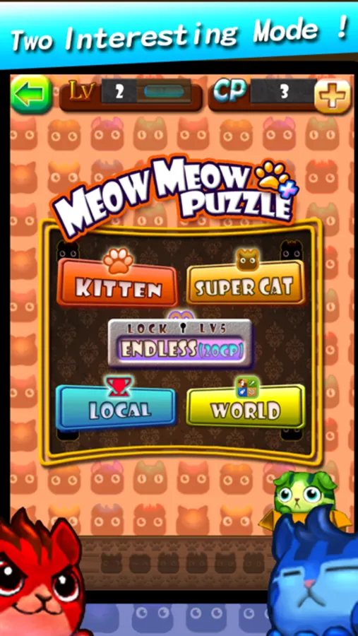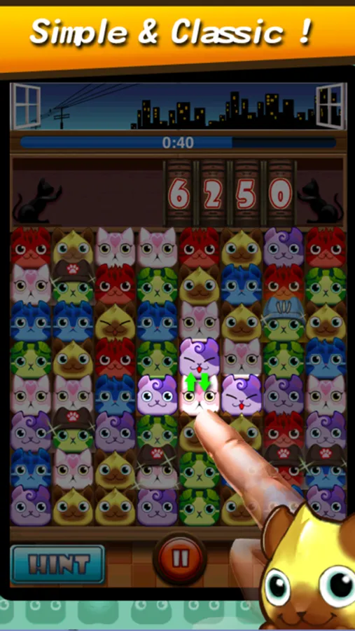 Play with five different cats. It’s easy to match and you can enjoy the speed!