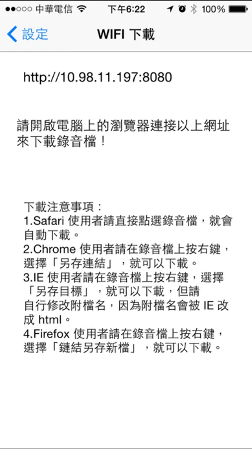 錄音檔可以透過匯出的方式存到 iTunes 分享,或是使用電子郵件寄送,也可以上傳到 Dropbox 網路硬碟,也可以使用「開啟...」功能,將錄音檔上傳到 iCloud 、Google 雲端硬碟或是使用其他 APP 開啟