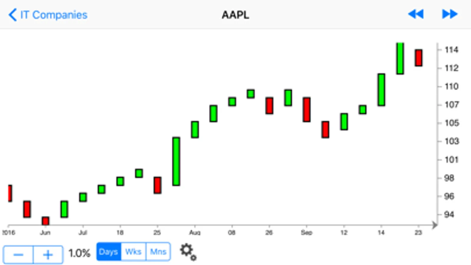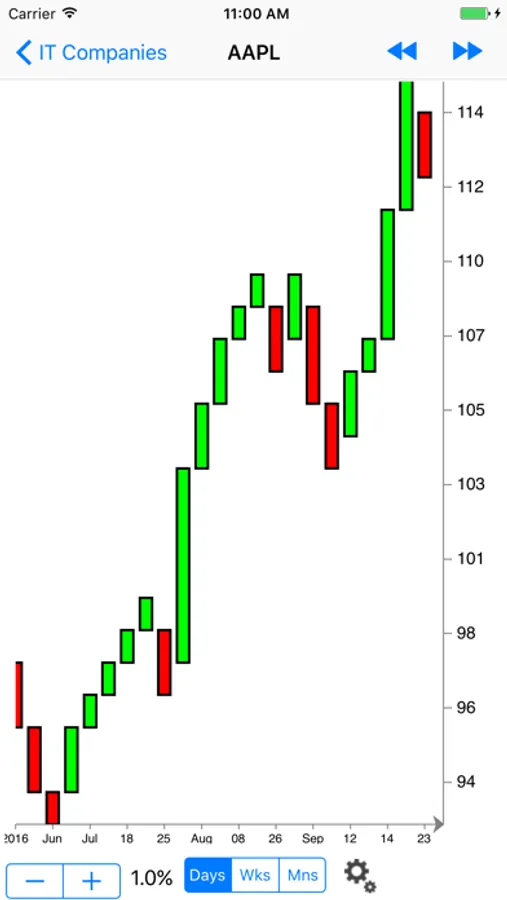 The only Renko charting app on the store! It uses Yahoo Finance data feed as a source. So if a stock is listed in Yahoo Finance, you can quickly and easily see its daily, weekly, or monthly Renko chart.
