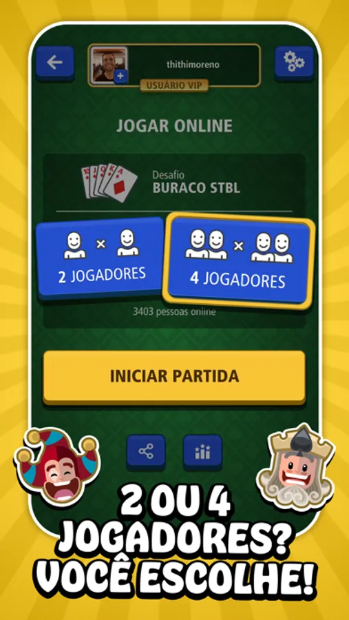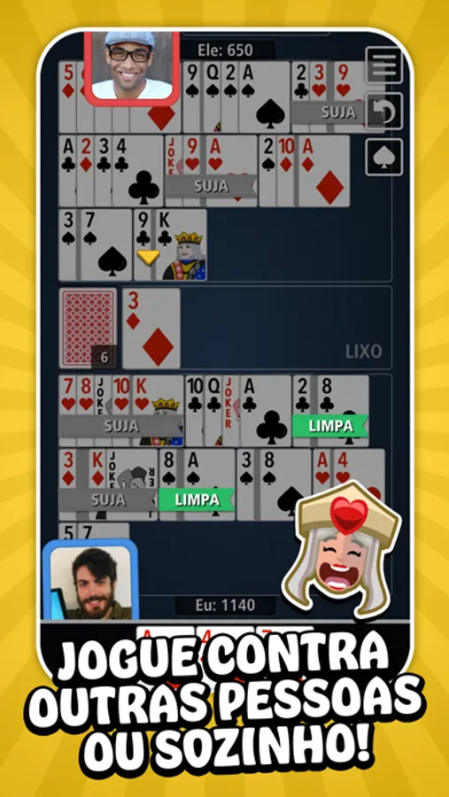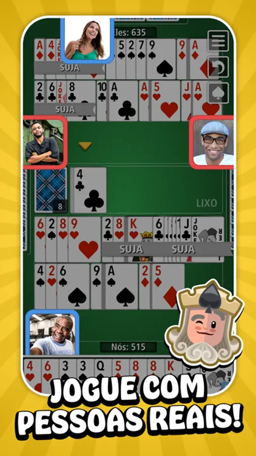 - JOGUE COM SEUS AMIGOS E FAMILIARES: convide seus amigos e familiares para a mesma partida de Buraco.
