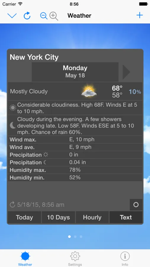 • Forecast in text format