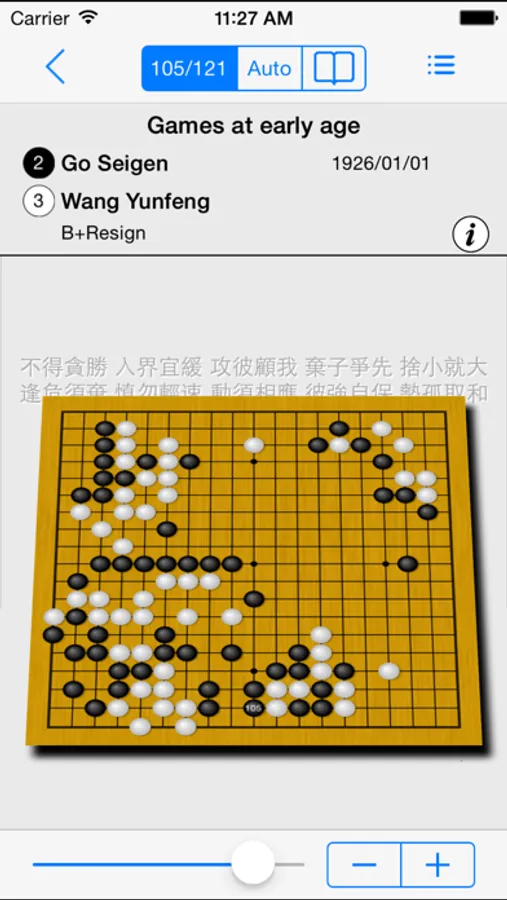 + Clean and simple UI built on top of the deep technologies and elegant iOS platform. You can replay games in normal plain flat board with color or black/white mode, 3D perspective view, or browse the game like reading a real book. Even you can view the game with real 3D go ban model through Argument Reality technologies (available for devices running iOS 11+).