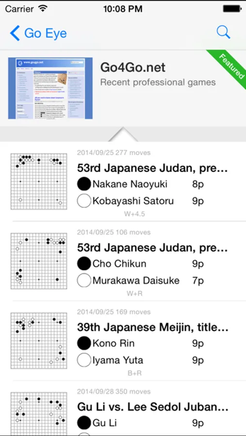 + Deep integration with the professional go database from go4go.net so that you can access latest professional games by just a tap from go4go's rich resources, and search the desired games from the database by criteria like player names and tournaments, etc.