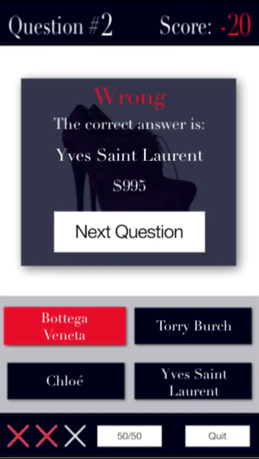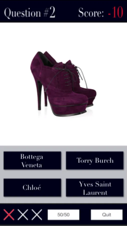 Have you ever found yourself looking at other women's shoes and trying to guess who the designer is? It's fun, isn't it? Name The Designer is exactly that. One of the 400 shoes is displayed and you have to name the designer from a list of 4 possible designers.
