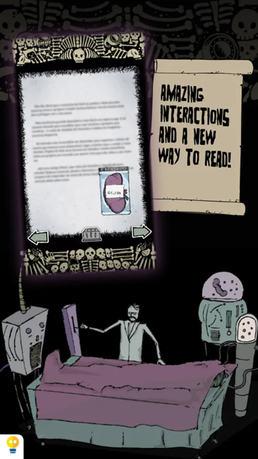In Frankie for Kids the reader can move objects, turn lights on and off, peep through a hole, define the destiny of a boat, make a heart beat and travel through reading, hearing noises that please and amaze.