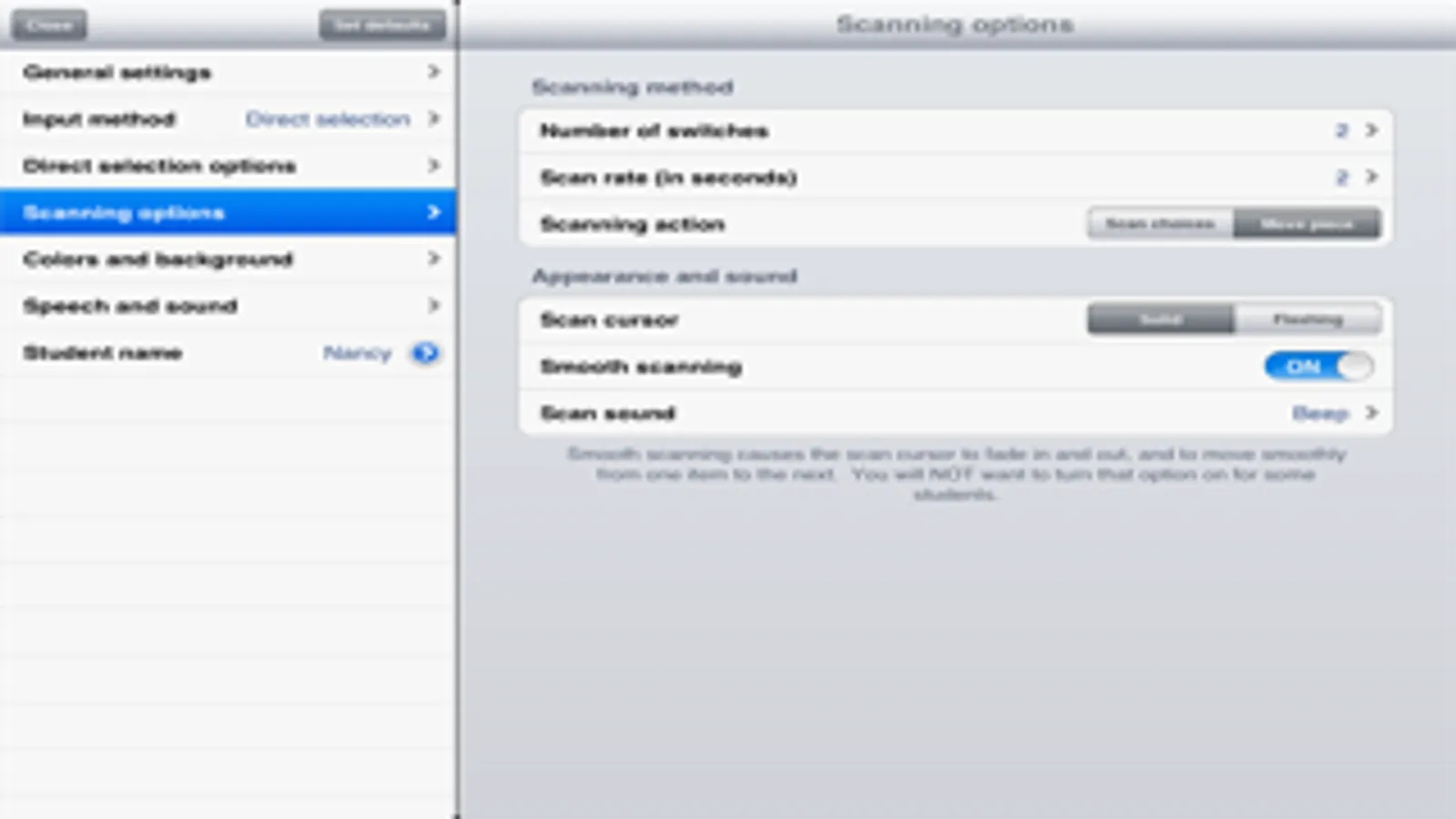 This setting is used for 1 switch access or one press anywhere on the screen.
