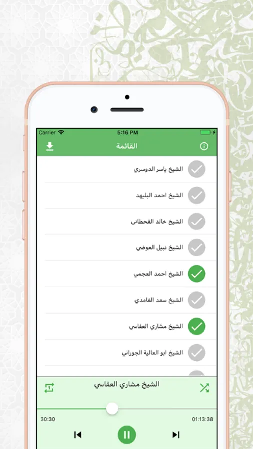 الشيخ أحمد بن علي العجمي ، الشيخ مشاري بن راشد العفاسي ، الشيخ نبيل العوضي ، الشيخ ياسر الدوسري ، الشيخ محمد جبريل ، الشيخ ماهر المعيقلي ، الشيخ إدريس أبكر ، الشيخ عبد الرحمن السديس ، الشيخ عبد الله السدحان ، الشيخ أبوبكر الشاطري