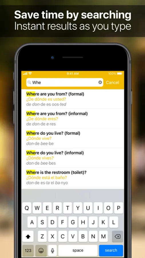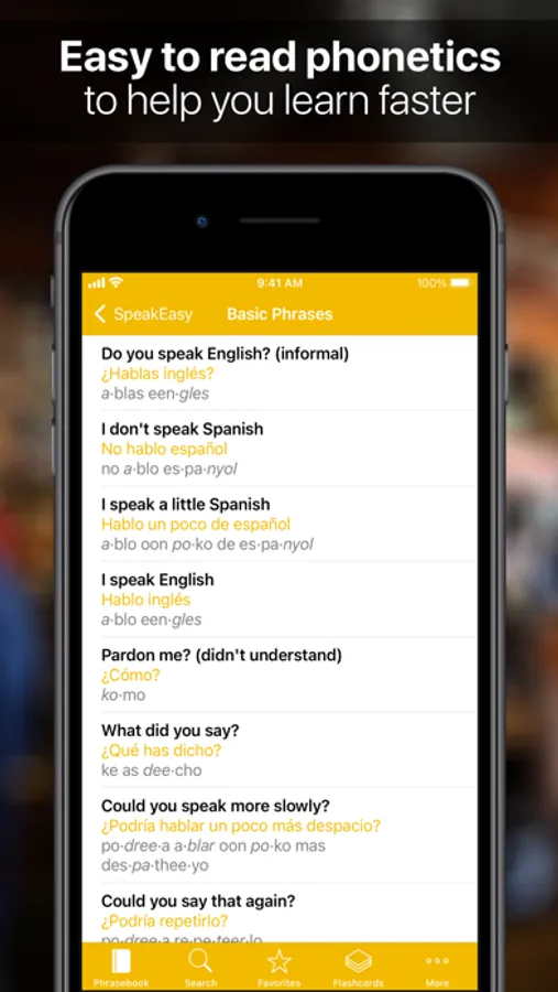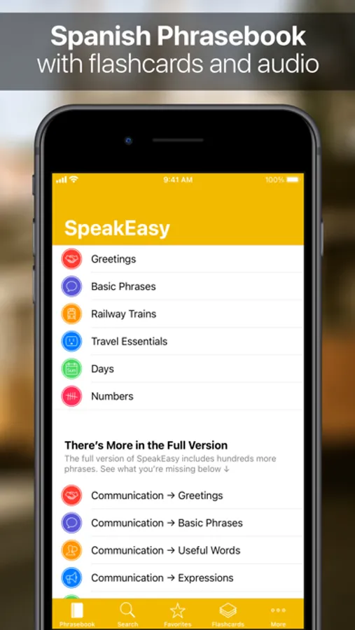 • Over 160 essential travel phrases with Spanish and phonetic translations, plus audio. Over 900 phrases are available in the Complete Edition.