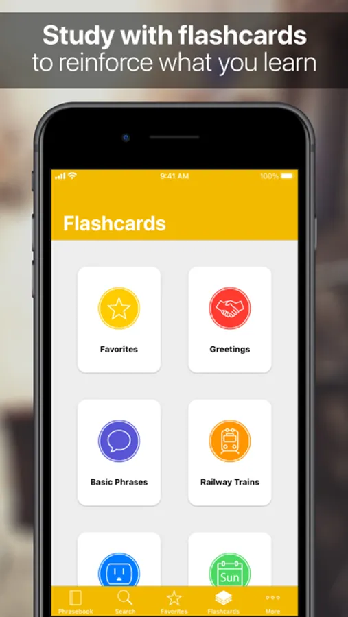 • Flashcards with English on one side and Spanish on the other side, that you can use to study and test yourself.