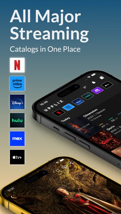 Your ultimate guide to movies and series on the major streaming services. If you're a subscriber to Netflix, Disney, Prime Video, HBO Max, Hulu, or AppleTV, Upflix is perfect for you!