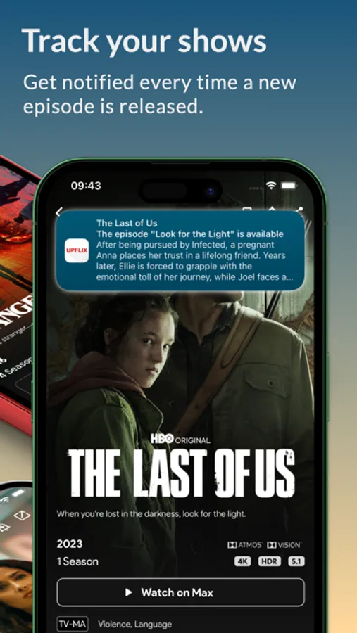 Upflix offers two different types of lists: a wishlist and a list of the series you're following. If you're watching "The Witcher" on Netflix and "The Last of Us" on HBO Max, you can add both series and be notified whenever a new episode or season arrives. That way, you won't miss a thing.