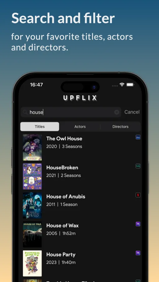 Upflix is a practical and simple guide. Everything is quick and straightforward, with no accounts or logins required. Just download and start using it. The only prerequisite is being a subscriber to Netflix or another streaming service that we support.