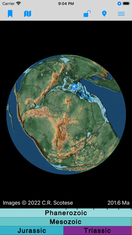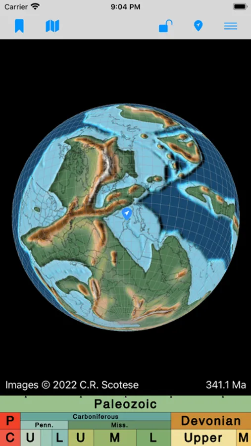 Would you like to continue your travels back through time? Well, jump on the Ancient Earth time machine app and travel back to a time before the supercontinent of Pangea came together (540 Ma- 200 Ma). This version of Ancient Earth vividly illustrates the continental collisions that assembled the the supercontinent of Pangea during the Paleozoic and early Mesozoic. Watch as the continents of Laurentia, Baltica, Siberia and Gondwana come together, mountain ranges rise and fall, old ocean basins close, landmasses are uplifted, and polar ice caps wax and wane.