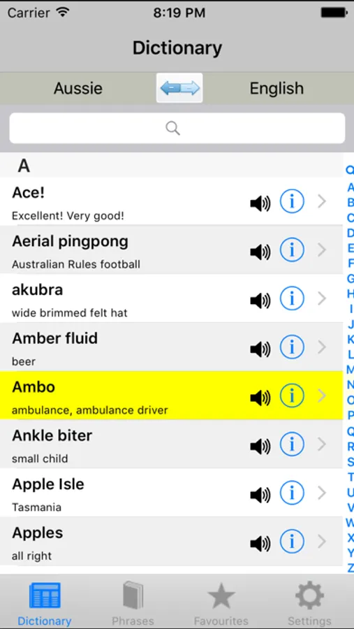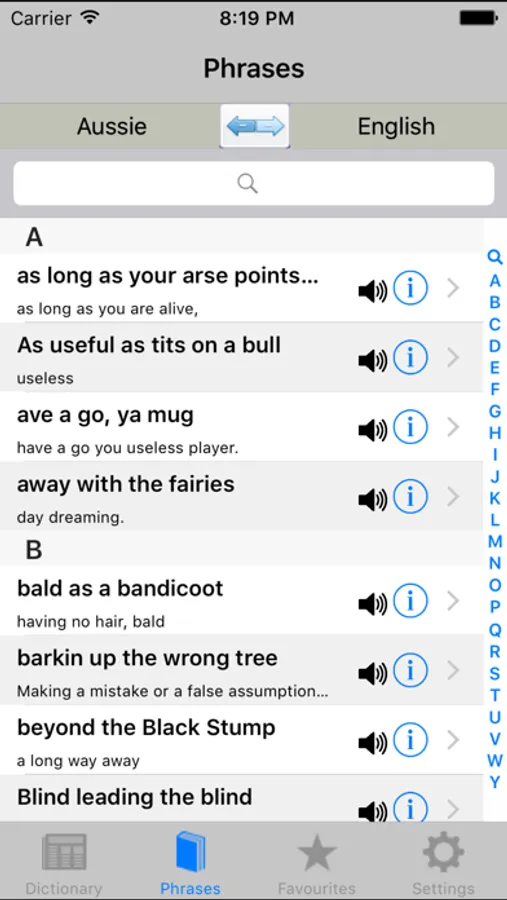 Translates Aussie words and phrases into a language you can understand.