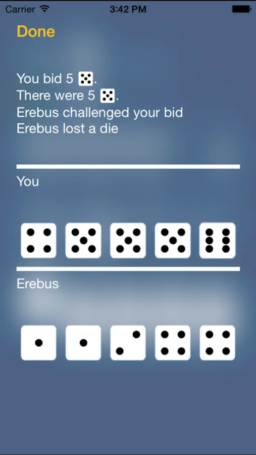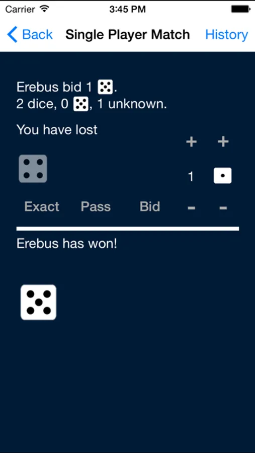 Designed for both casual and serious players, Michigan Liar's Dice can be played against one to three opponents, and provides a simple interface that helps you make your best bid. The game has the complete set of bids including pushing, exact (spot on), pass, and special rules when a player gets to one die.