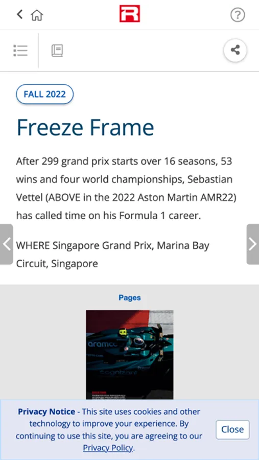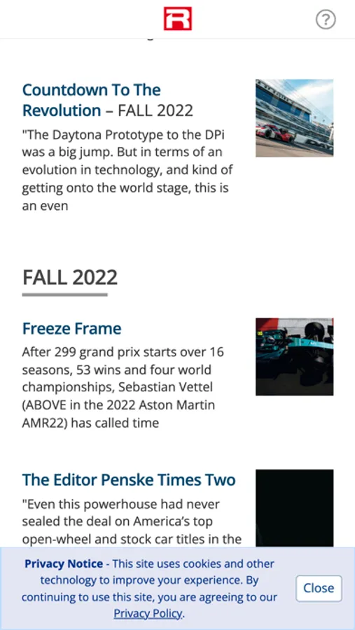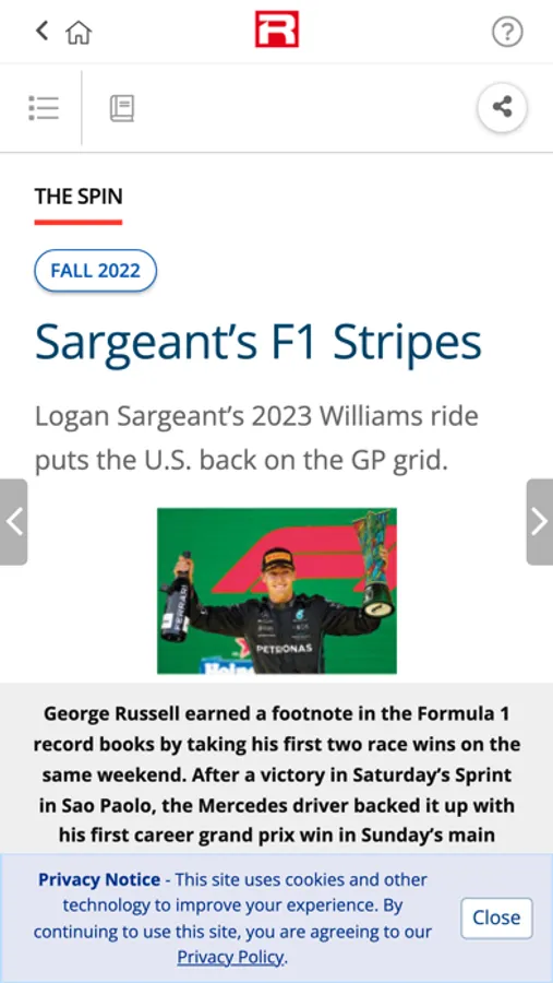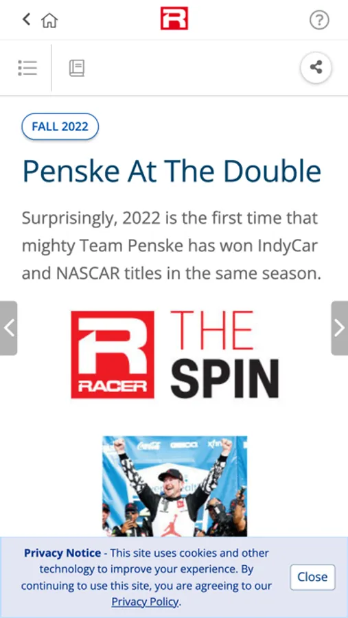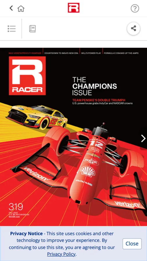 The RACER app provides access to a full-version digital edition of the magazine. Single issues are only $4.99 (print edition is $8.95). An auto-renewing subscription is only $19.99 for one year (8 issues).