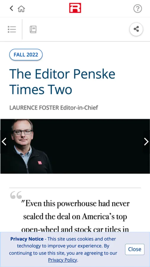 RACER is a premium motorsports publication known for its beautiful images and timeless stories. RACER’s mission is to create compelling high-quality content that reflects the full spectrum of racing’s vibrant culture and passionate way of life. It’s a magazine that takes readers behind the scenes of the sport with an authentic voice that conveys the values, beliefs and competitive mindset of those who create global racing on a daily basis.