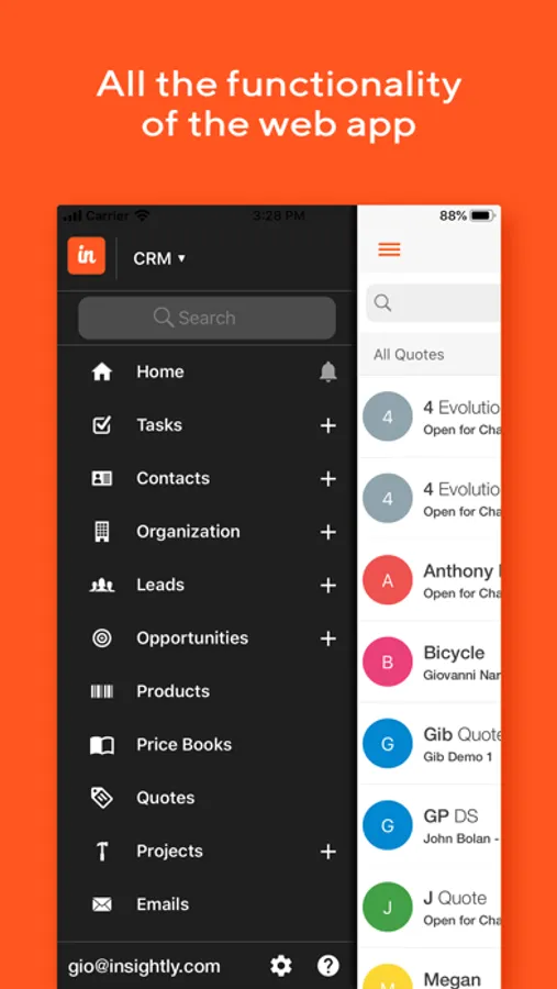 The Insightly CRM app is free and works in tandem with the Insightly CRM web application, so that your team has all key customer information on the go.