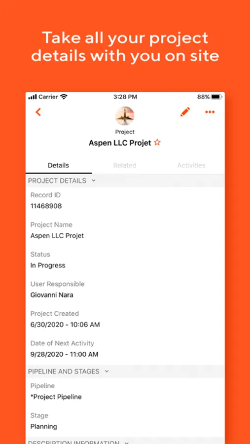 * Create projects and assign tasks to your team from your smartphone. See how a project is developing to have answers ready for your customers and, more importantly, be prepared for upsell opportunities.